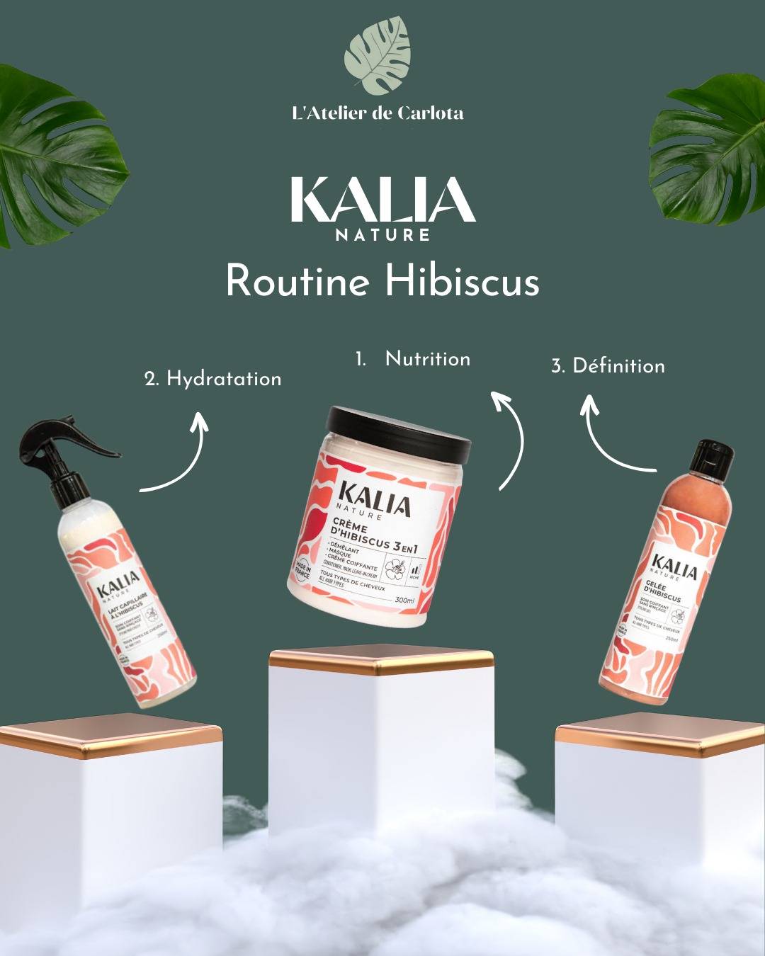 Parmi les gammes adaptées aux cheveux bouclés, le salon a choisi l'excellente marque française Kalia Nature, une marque de produits capillaires